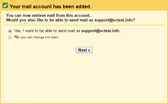 7. Once your account is successfully added, you can decide whether to use this email as From address. This way you will be able to compose messages in Gmail, but have them appear to be sent from your cPanel email address.